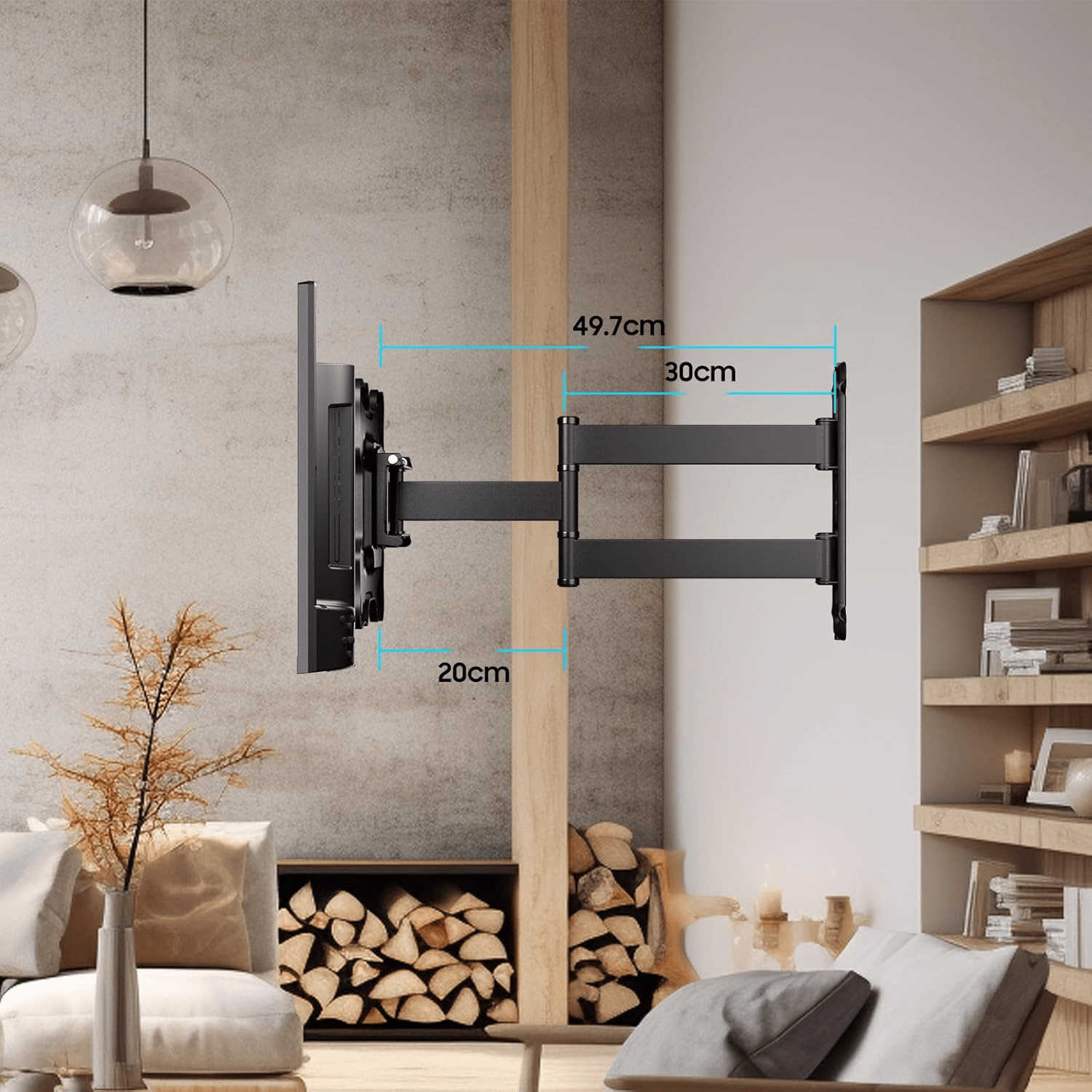 The bracket rotates freely for flexible monitor movement, enhancing viewing comfort. It can be tucked close to the wall when not in use, saving space and keeping your home tidy.