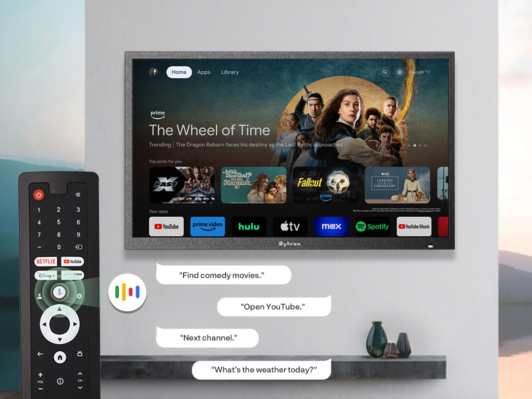 Built-in Google Assistant for hands-free control, allowing voice search, app launching, and smart home control.