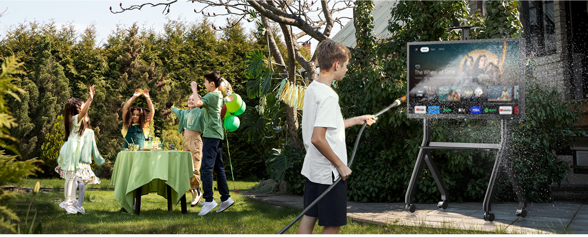 3x brighter than indoor TVs with 1500 nits, ensuring clear visibility even in direct sunlight.
