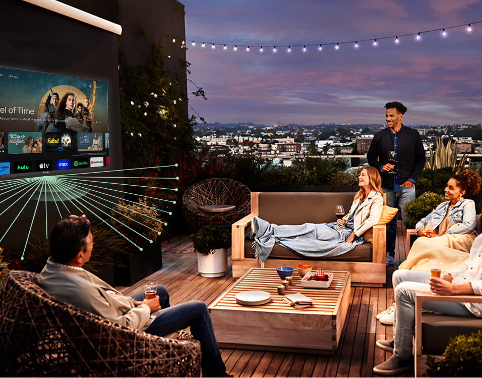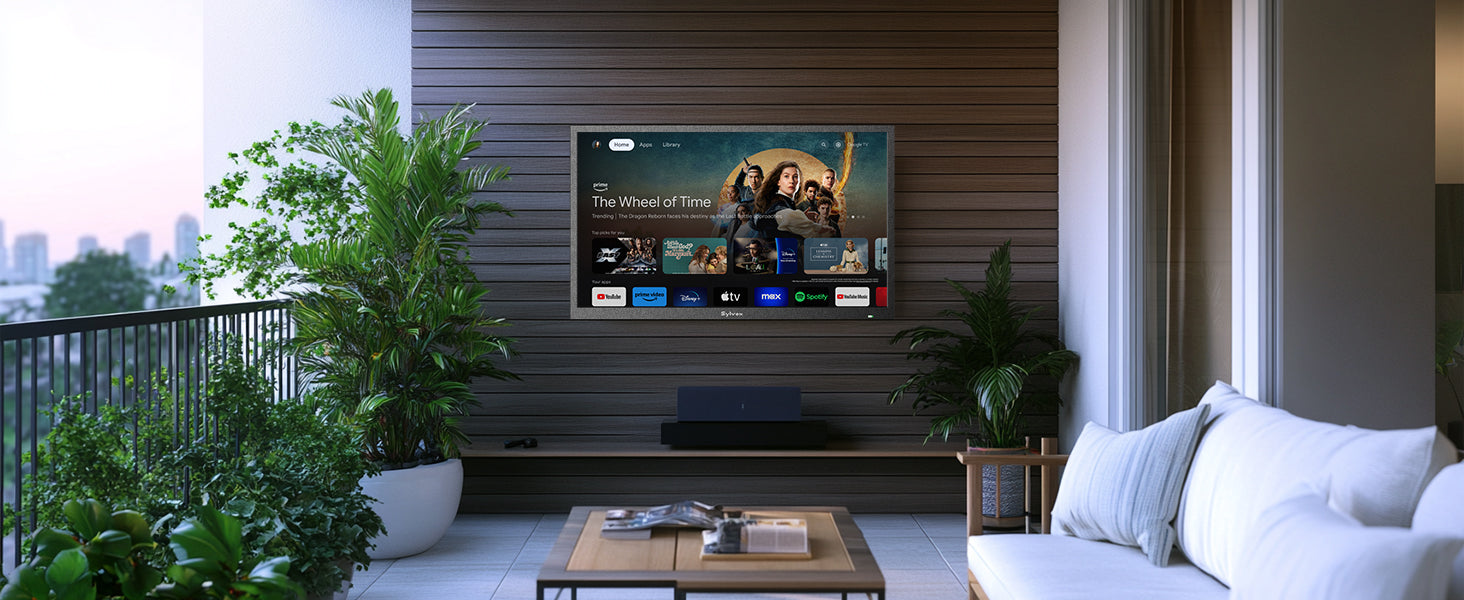 Premium Dolby Atmos sound system for immersive, multi-dimensional audio, perfect for outdoor spaces.