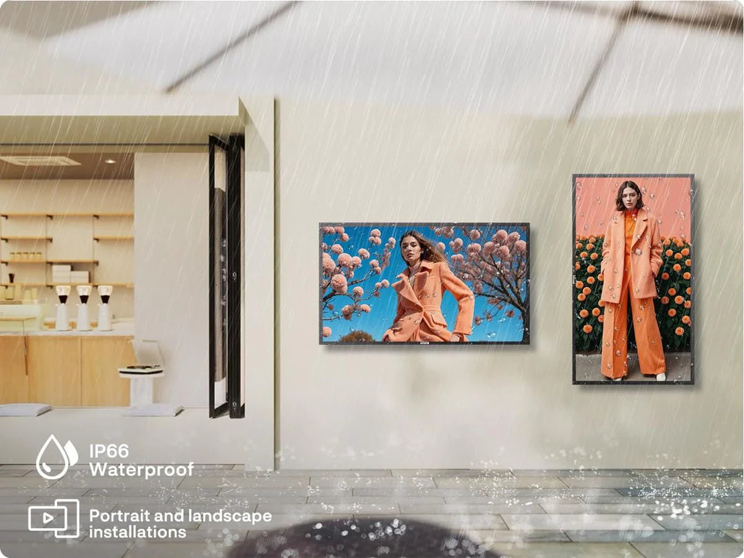 • Ultra-bright panel — 3–6× brighter than standard TVs, ensuring visibility even in direct sunlight.