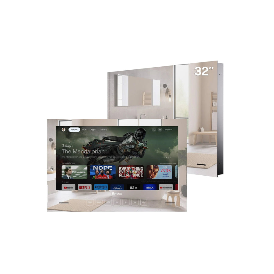 With IP65 waterproof rating, full mirror surface, and hiden mirror vibration, the sylvox bathroom TV can be directly installed in a hotel bathroom,sauna bathroom,and other humid enviroments.