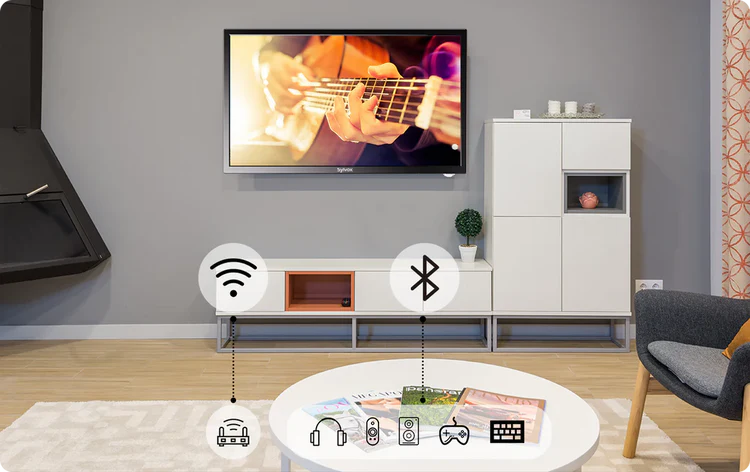 You can wirelessly connect your Bluetooth speaker and watch your favorite content through a Wi-Fi and Bluetooth connection.