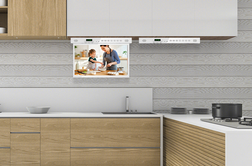 Explore the Kitchen TV Gallery, highlighting the versatility of our TVs in kitchens, RVs, bedrooms, and beyond. Elevate entertainment in every corner of your home with style and functionality