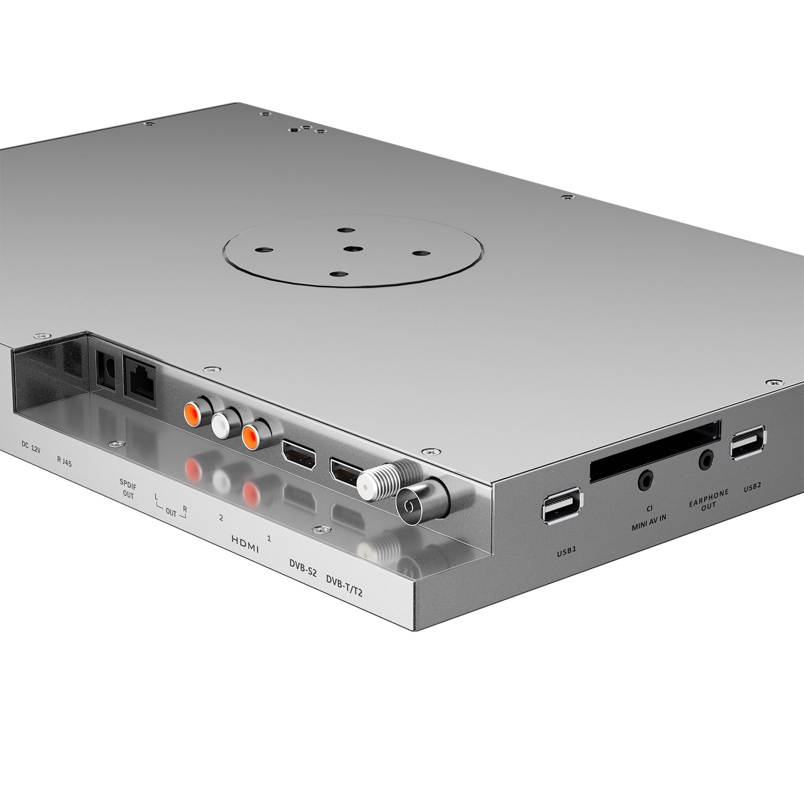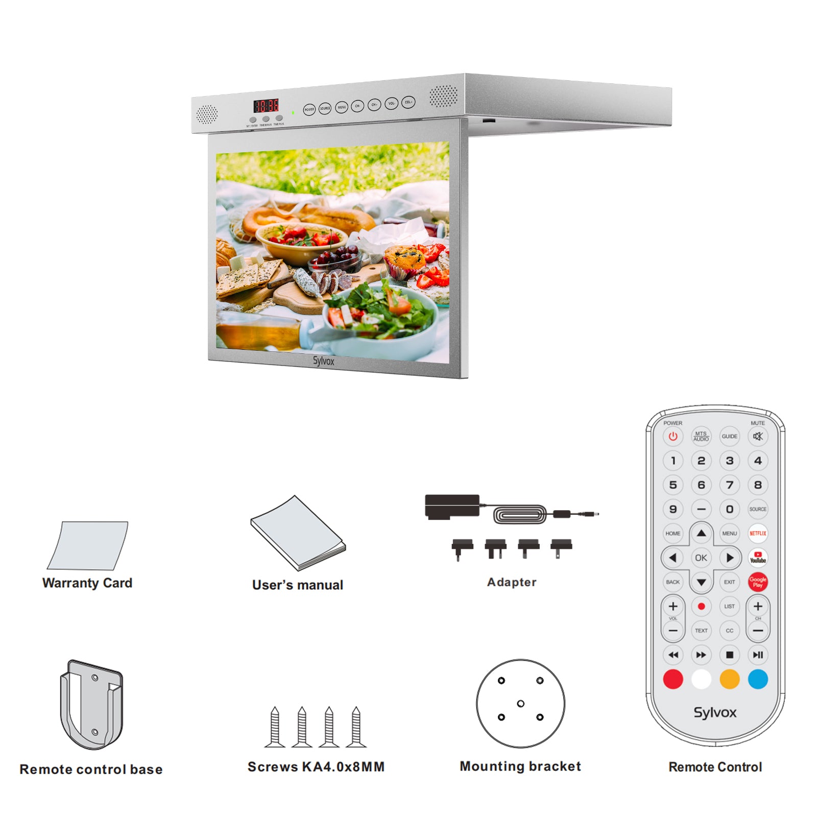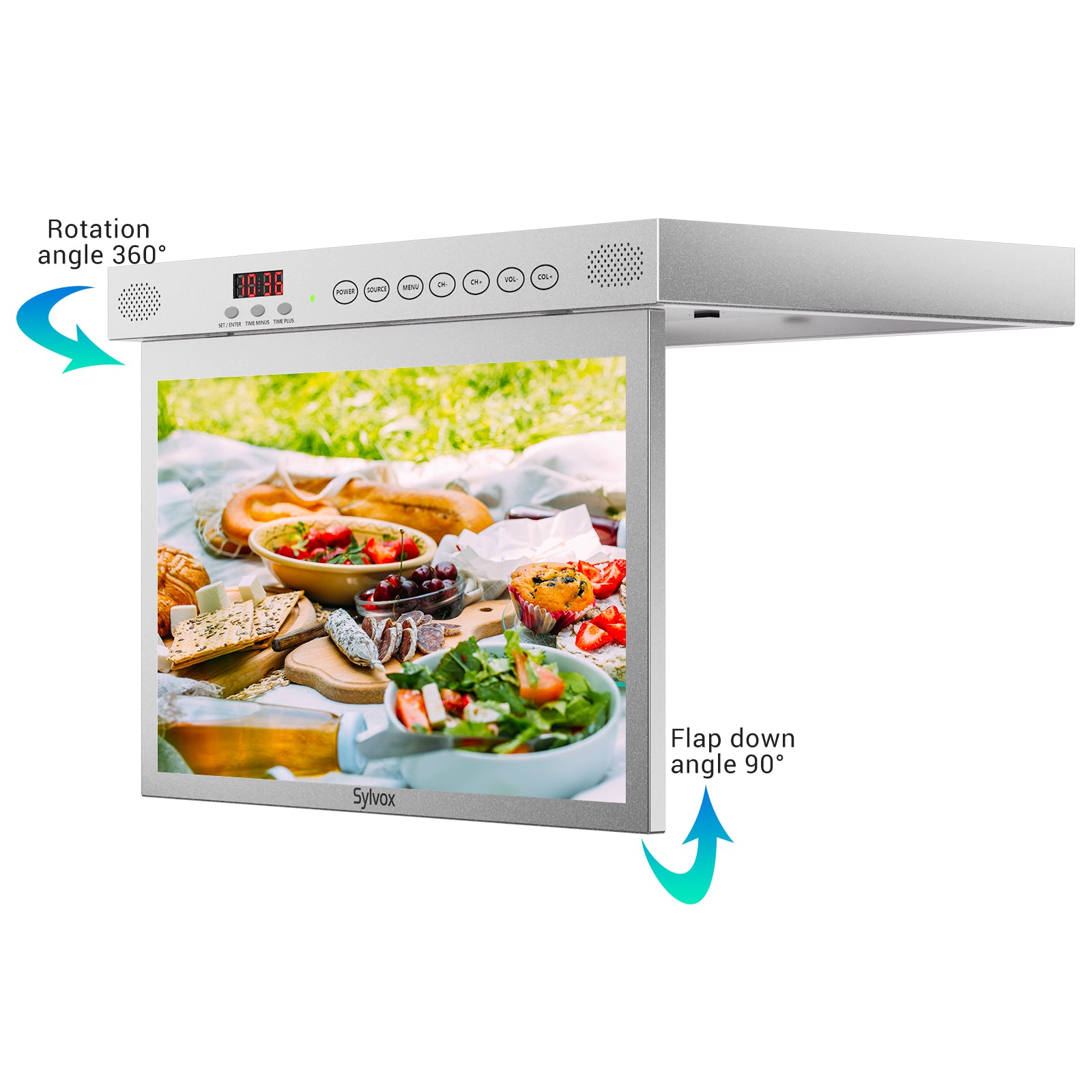 Elevate your surroundings with an under-cabinet TV featuring a sleek white all-metal housing and ultra-slim profile. Designed for minimal space intrusion, it unfolds for use and easily folds away when done. Effortlessly installed with just a few screws and a screwdriver, taking less than 30 minutes.