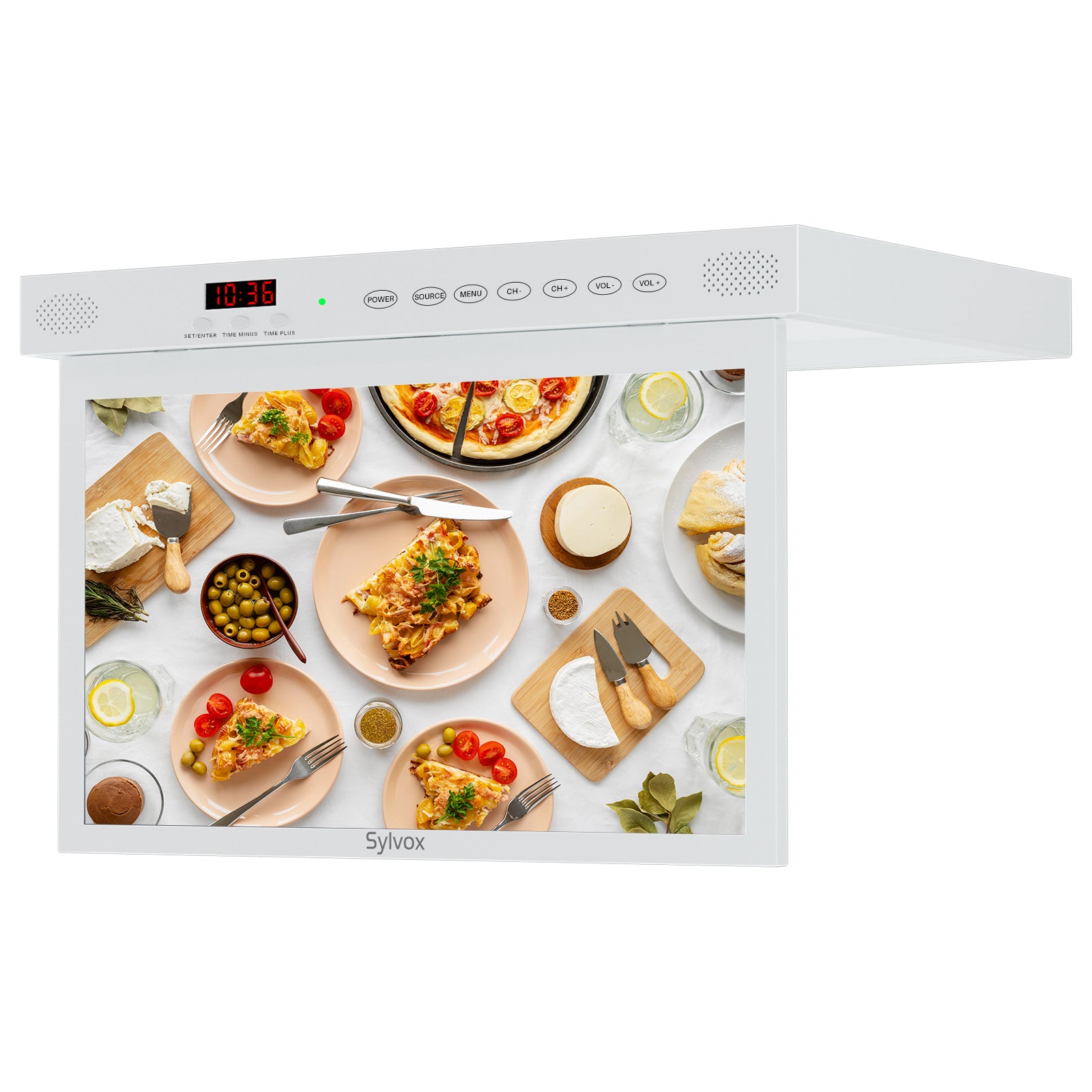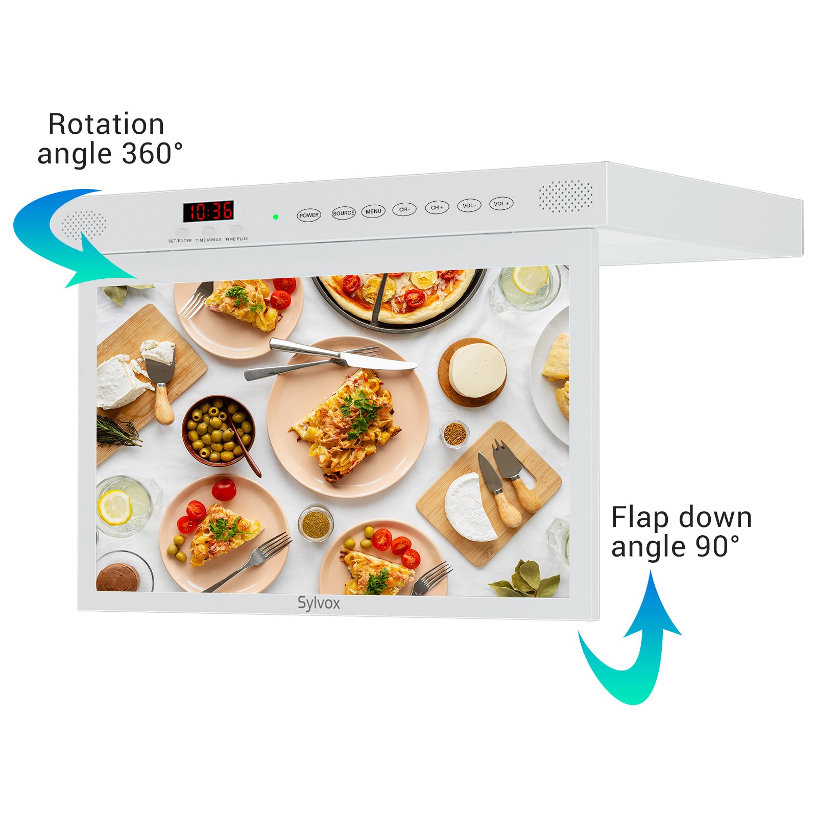 Unfold for use, fold away when done. Sylvox's flap-down kitchen TV is designed for minimal space intrusion, effortlessly installed with just a few screws and a screwdriver, taking less than 30 minutes.