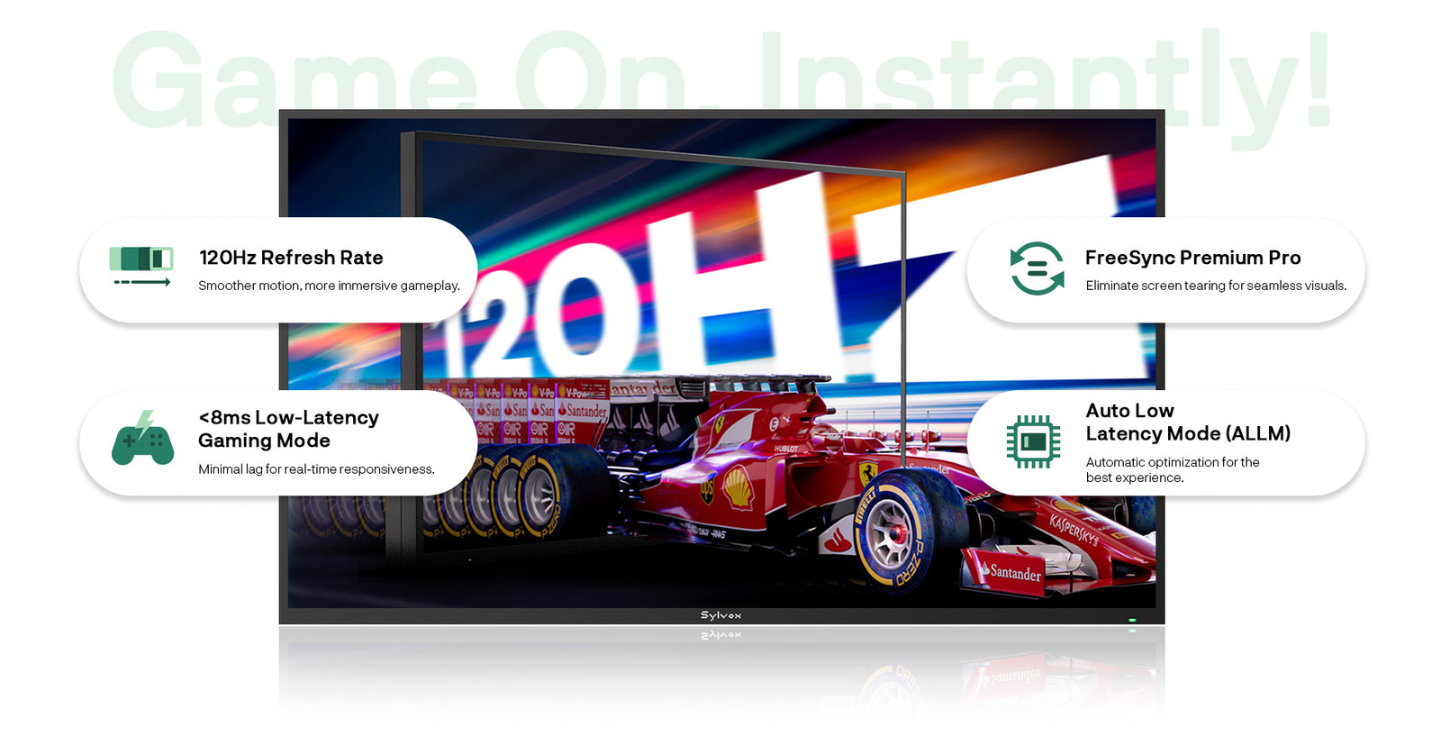 • 120Hz Smooth Gaming – Native 120Hz refresh rate with 48–120Hz VRR and ALLM for tear‑free, ultra‑responsive gameplay.