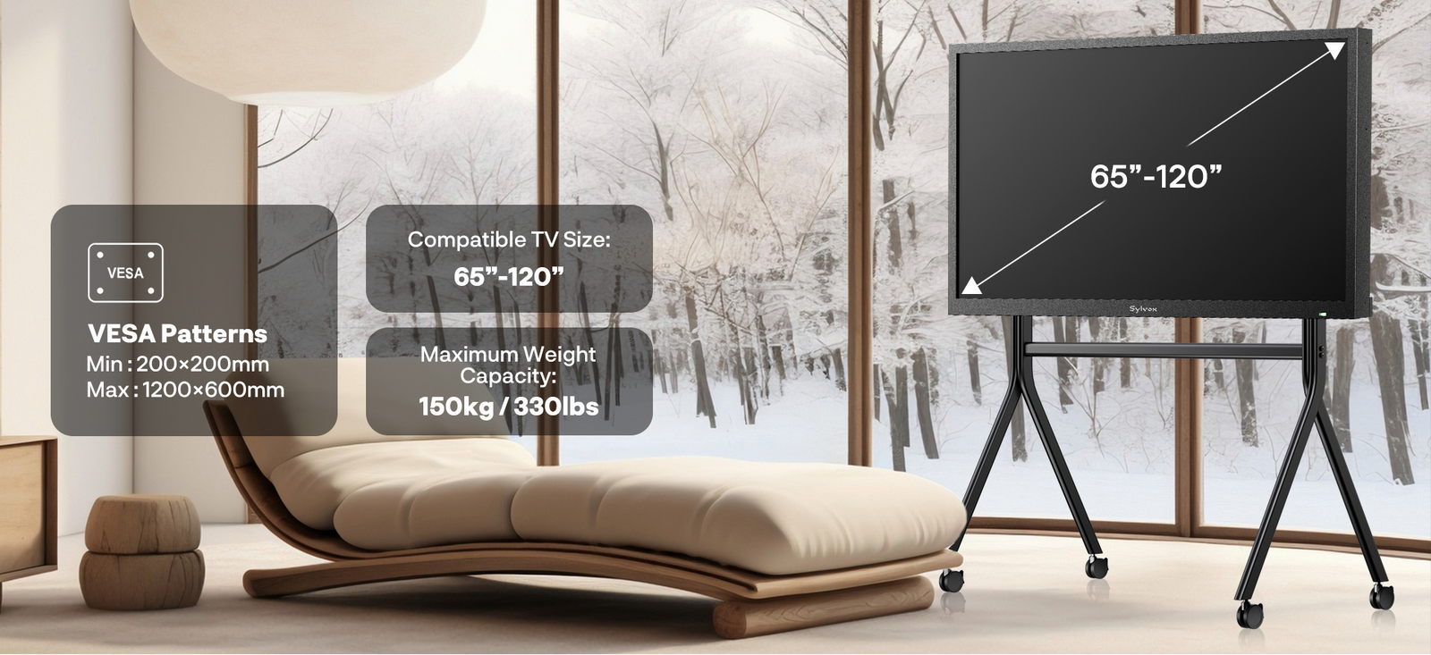 Sylvox Outdoor TV Y-Type Rolling Cart for 65" to 120" TVs